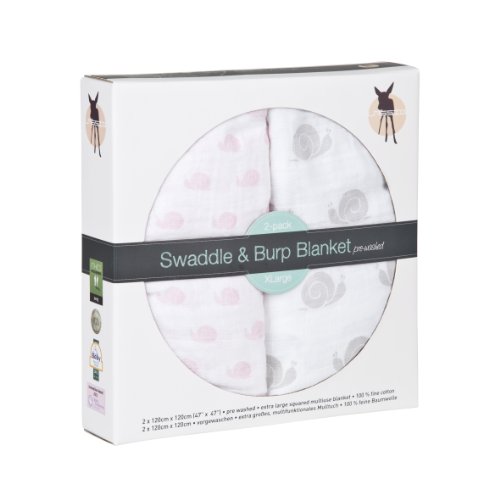 Lassig Swaddle and Burp Blanket, Sweet Snail Girls, X-Large