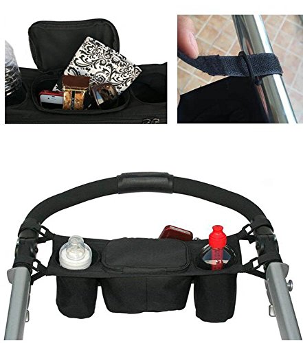 - 四つのベルクロストラップは、水平、コンソールスタイルのベビーカーのハンドルバーに取り付けられます