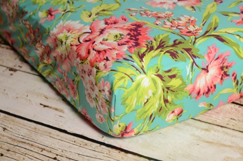 Lavender Linens Coral and Aqua Floral Crib Sheet by Lavender Linens