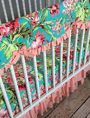 Lavender Linens Three Piece Peach and Aqua Floral Crib Set by Lavender Linens