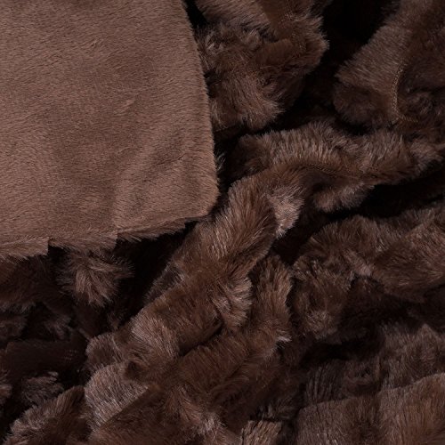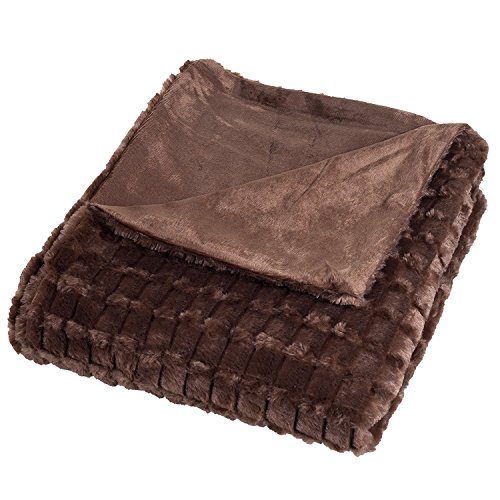 Lavish Home Plush Striped Embossed Faux Fur Mink Throw Blanket, Brown