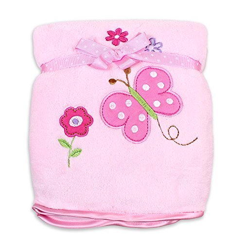 Spasilk Baby-Girls Newborn Extra Thick Plush Blanket with Satin Trim, Pink Butterfly, 30 Inchx40 Inch [並行輸入品]