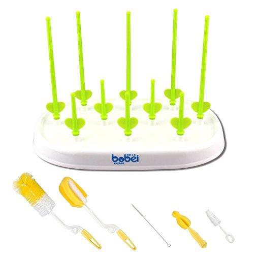 Le seul 6-in-1ベビーボトル乾燥ブラシセット付きラック草カウンタートップツリー(トランクグリーン)