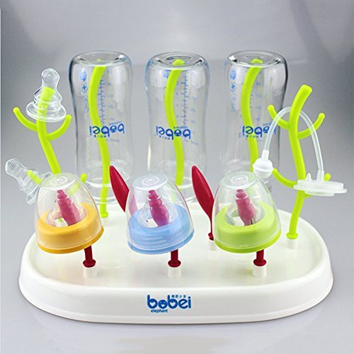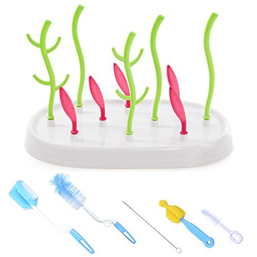 Le seul 6-in-1ベビーボトル乾燥ブラシセット付きラック草カウンタートップツリー(木)