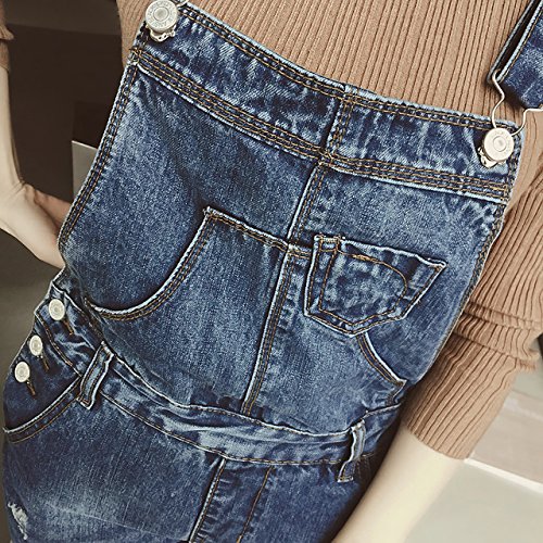 (ル・セリジエ) レディース サロペット デニム ダメージ オーバーオール オールインワン スキニー おしゃれ ママ (XL)