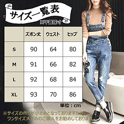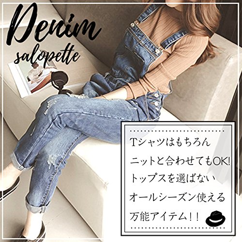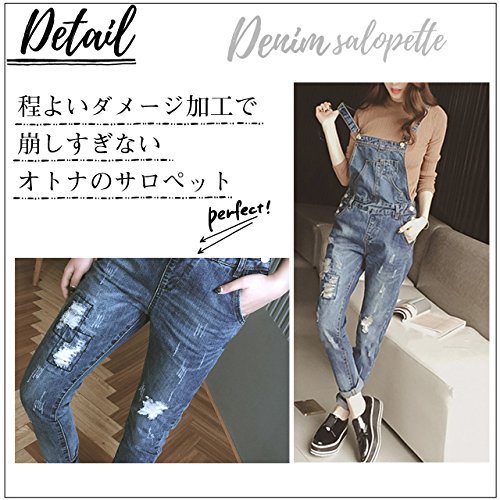 [ル・セリジエ] サロペット レディース デニム ダメージ オーバーオール オールインワン スキニー おしゃれ ママ (M)