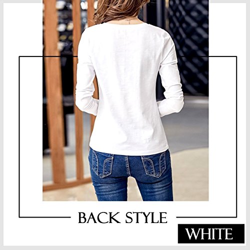 [ル・セリジエ] 長袖 カットソー レディース 花 柄 きれいめ ロング Tシャツ Vネック ライン オフィス カジュアル (ホワイトXL)