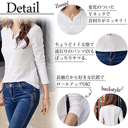 - フロントにはいったさりげなく上品な刺繍柄が女性らしさを引き立てるシンプルでお洒落なカットソー(長袖Tシャツ)。通気性が良く肌ざわりも良い素材で、着心地よく清潔感があります。シンプルなデザインですので幅広いファッションスタイルに合わせることできます。
