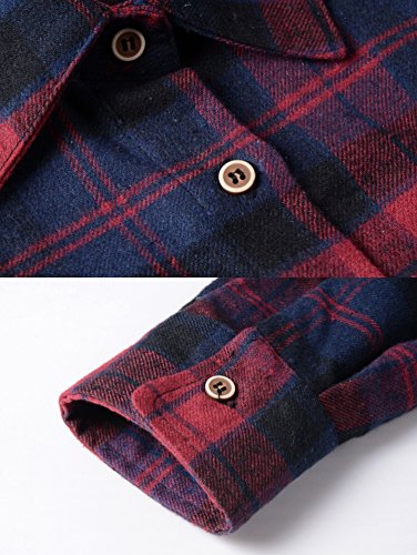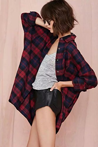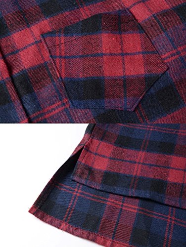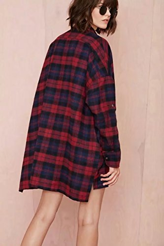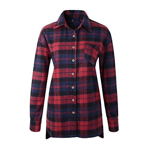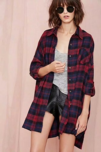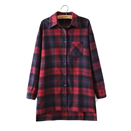 (ル・セリジエ) レディース チェック 柄 シャツ ネルシャツ 長袖 ロング 丈 ワンピース アウター 羽織もの (赤M)
