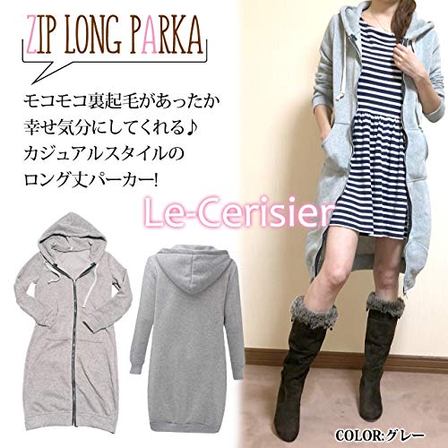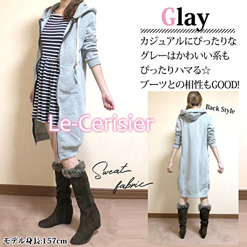 (ル・セリジエ) パーカー ロング丈 裏起毛 暖かい レディース スウェット 長袖 おしゃれ ママ 体型カバー (ふつう, グレー)