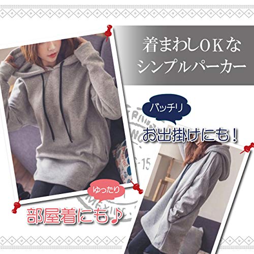 [ル・セリジエ] パーカー ロング丈 無地 裏起毛 暖かい レディース スウェット 長袖 ゆったり おおきいサイズ 部屋着 (L)