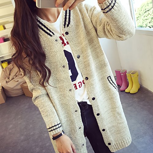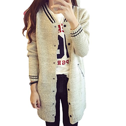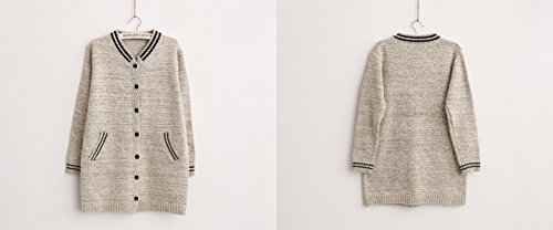 (ル・セリジエ) ニット ロング丈 スタジャン 風 カーディガン ジャケット レディース 長袖 セーター 暖かい カジュアル ワンピース (グレー)