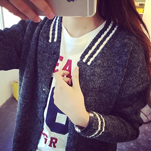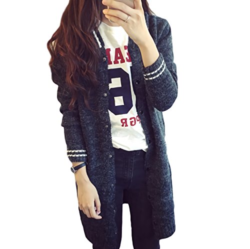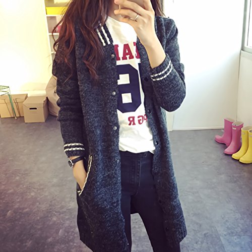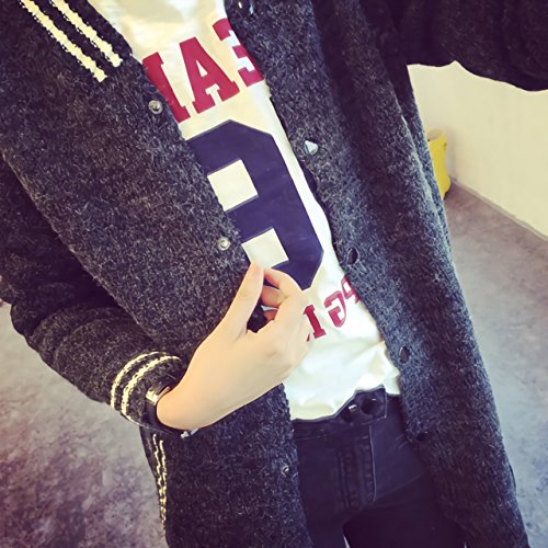 (ル・セリジエ) ニット ロング丈 スタジャン 風 カーディガン ジャケット レディース 長袖 セーター 暖かい カジュアル ワンピース (チャコールグレー)
