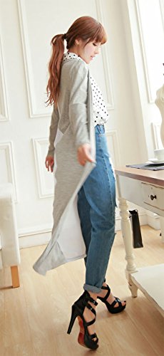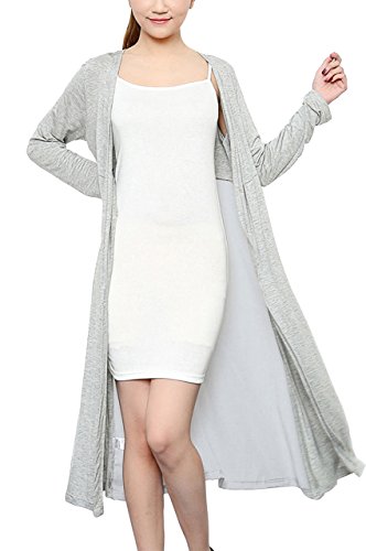 (ル・セリジエ) ロング カーディガン ガウン シンプル レディース ふんわり シフォン スリット 入り (グレー 丈110cm)