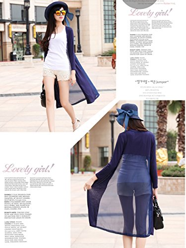 (ル・セリジエ) ロング カーディガン ガウン シンプル レディース ふんわり シフォン スリット 入り (ネイビー 丈110cm)