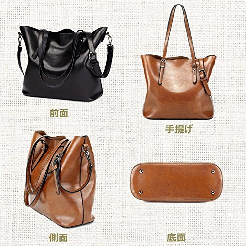 (ル・セリジエ) レディース 3way シンプル ショルダー バッグ ハンド トート バック 大容量 大きめ 通勤 レザー 斜めがけ (ブラック)