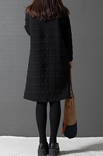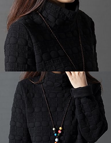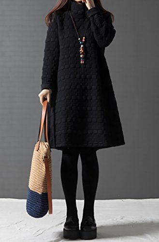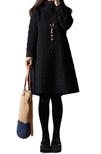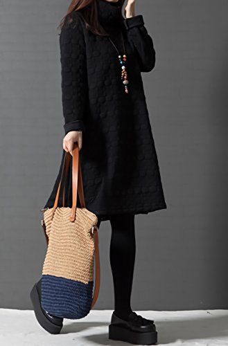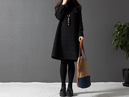 (ル・セリジエ) ゆったり あったか ワンピース カジュアル タートル ハイ ネック Aライン 長袖 体型カバー (黒L)