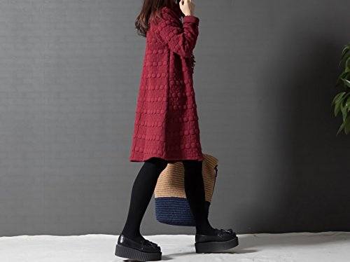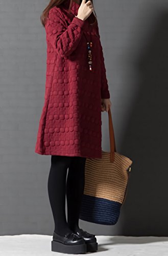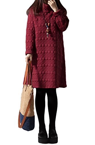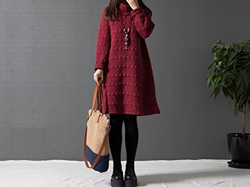 (ル・セリジエ) ゆったり あったか ワンピース カジュアル タートル ハイ ネック Aライン 長袖 体型カバー (赤L)