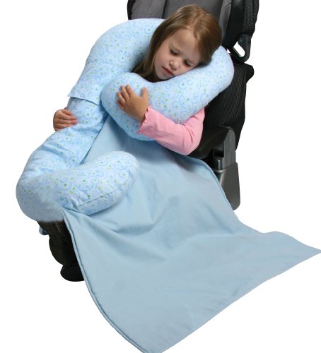Attached blanket warms and comforts weary little travelers;Elongated pillow tucks around for full body comfort;Generously sized blanket keeps legs warm or helps block sunlight;Built in blanket folds and tucks away for greater versatility;Includes a travel essentials pockets