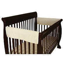 Soft, padded cover protects baby from splinters, paint chips and other chemicals and protects crib;Sturdy hook-and-loop closures for ease of use;Adjustable to fit most standard (skinny rail) and convertible (thick rail) style cribs;Covered in machine washable 100% organic cotton