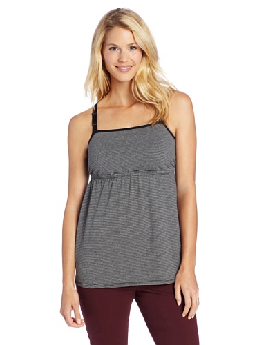 最先端レディーススクエアネック授乳キャミ - 黒とグレーのストリップ、綿/スパンデックスの柔らかいタッチサポートボディは、胸の快適さを与える究極のサポート。きちんと保持して謙虚さのためフロントは二重生地。お手入れ方法:手洗いしてください。吊り干し。必要な場合は非塩素系漂白剤のみ使用します。