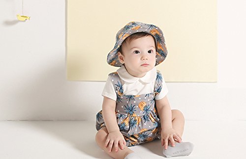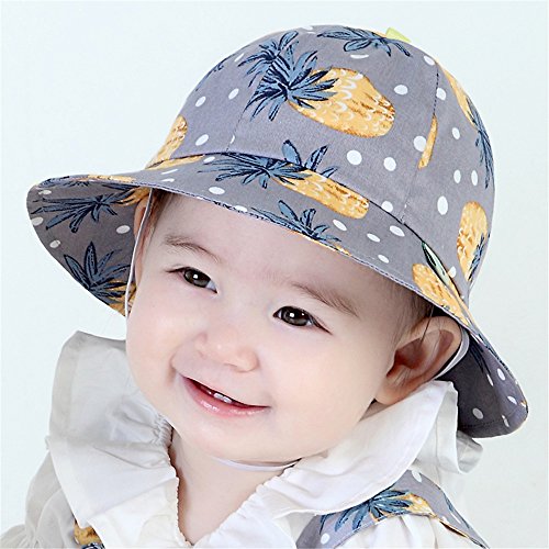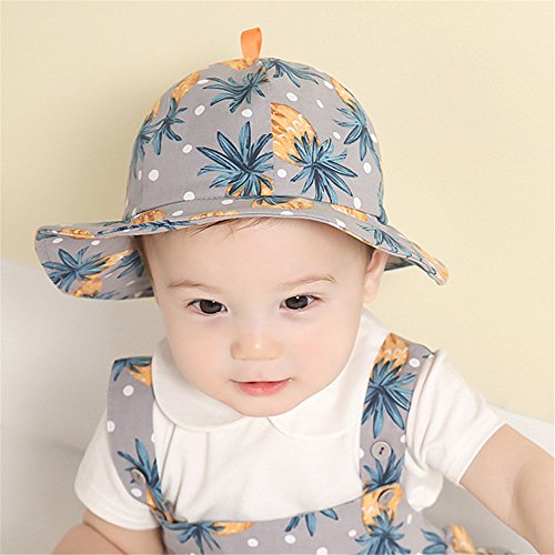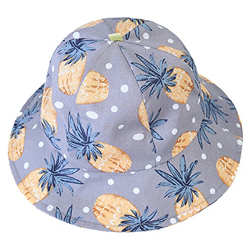 LeafIn キッズハット 子供向け つば広ハット 日焼予防帽子 パイナップル柄 サファリハット チューリップハット あごゴム付き (頭囲:50cm, グレー)