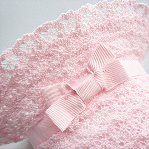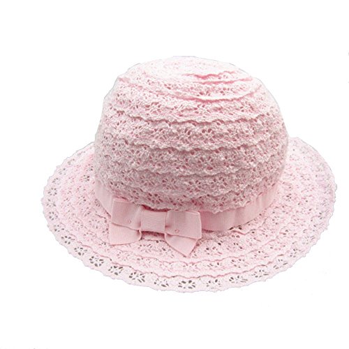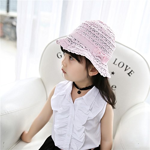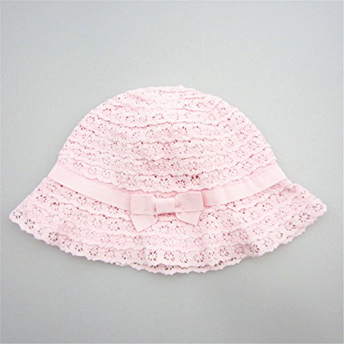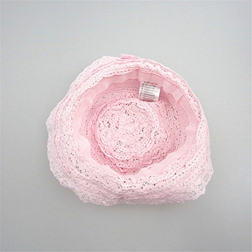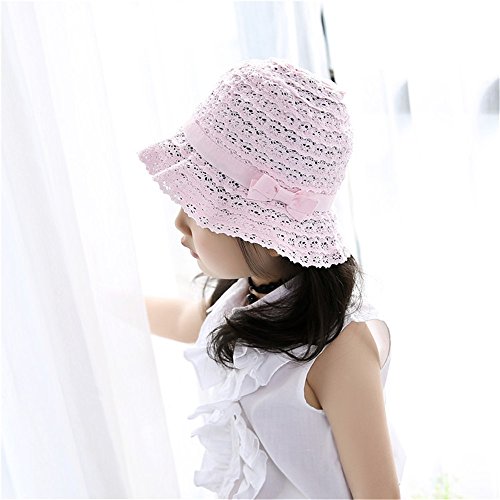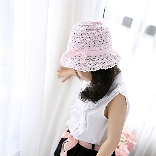 LeafIn キッズハット ベビー帽子 レース素材 蝶結び リボン付き レース リボン 紫外線対策 UVcut帽子 サファリハット チューリップハット (46cm, ピンク)