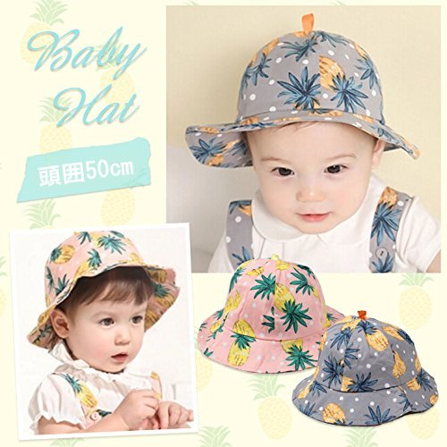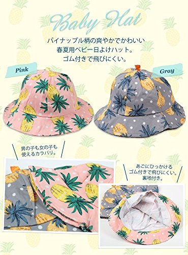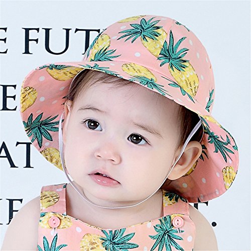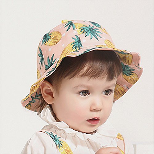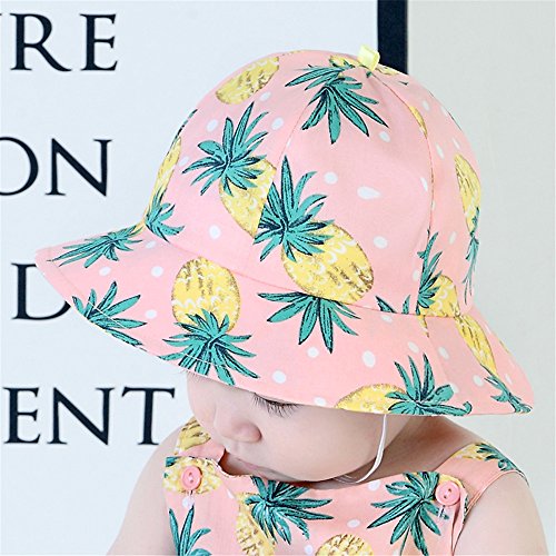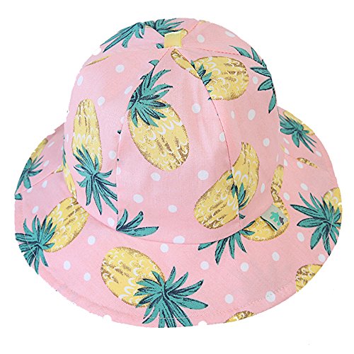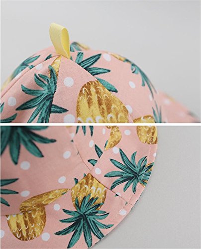 LeafIn キッズハット 子供向け つば広ハット 日焼予防帽子 パイナップル柄 サファリハット チューリップハット あごゴム付き (頭囲:50cm, ピンク)