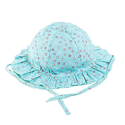 LeafIn ベビーハット 赤ちゃん 帽子 つば広 綿製 女の子 キッズキャップ サンバイザー 紫外線対策 日除け UVカット (S(頭囲:48CM), 小花 グリーン)