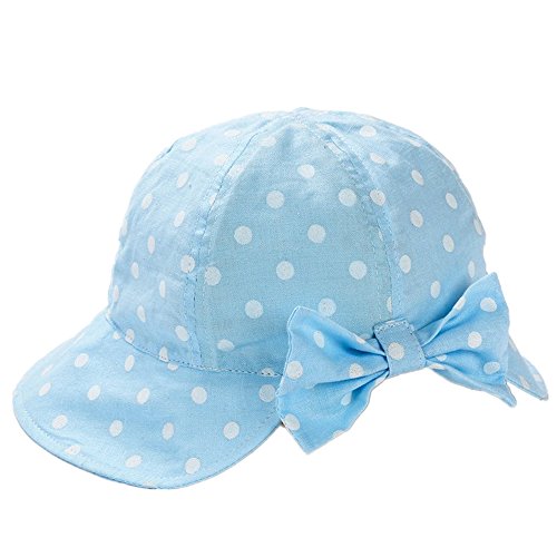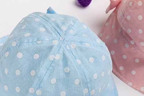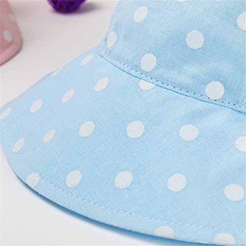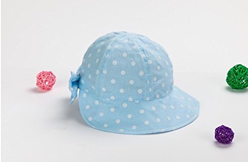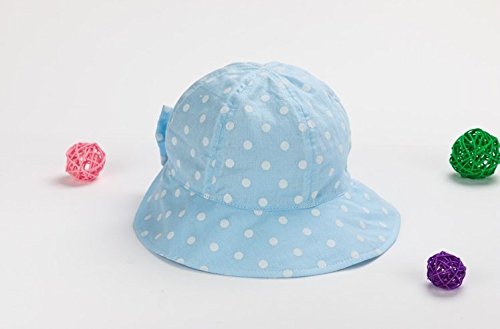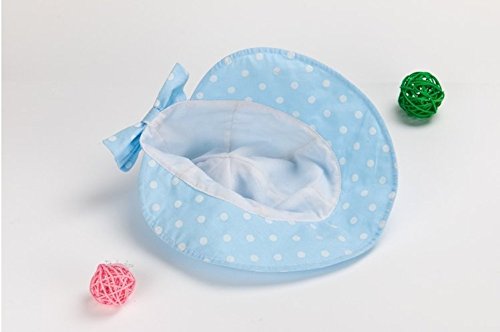 LeafIn ベビー 帽子 キッズ ハット 日よけ 紫外線対策 UVcut帽子 ドット 水玉 リボン 蝶結び サファリハット チューリップハット (L, ブルー)