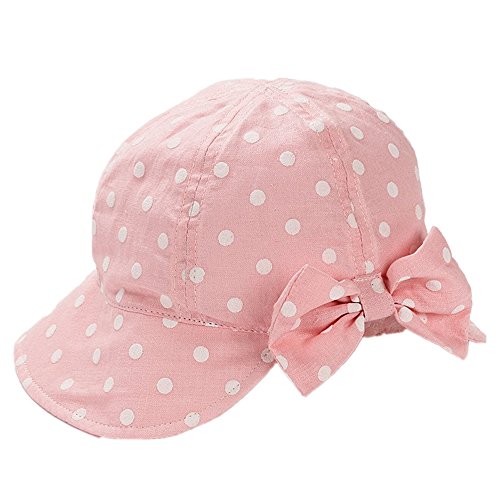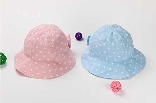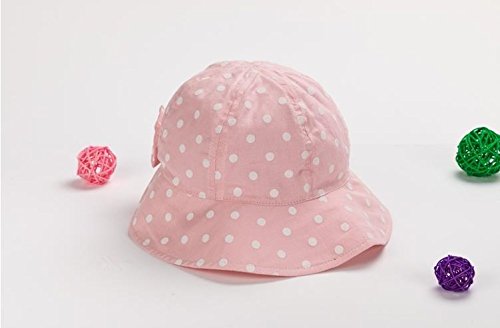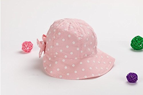 LeafIn ベビー 帽子 キッズ ハット 日よけ 紫外線対策 UVcut帽子 ドット 水玉 リボン 蝶結び サファリハット チューリップハット (M, ピンク)