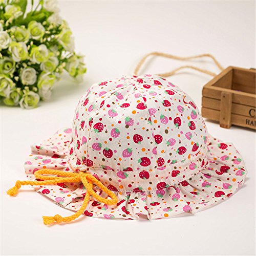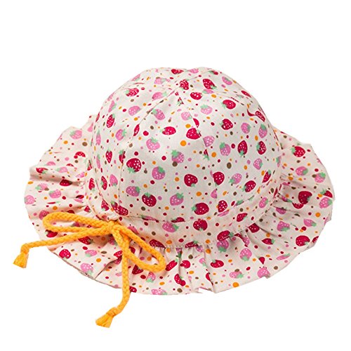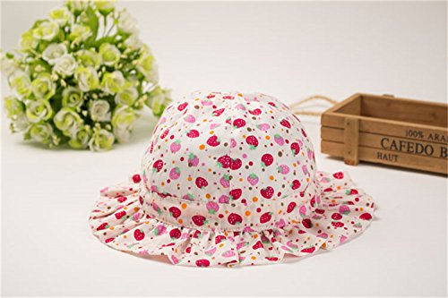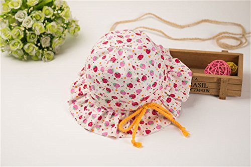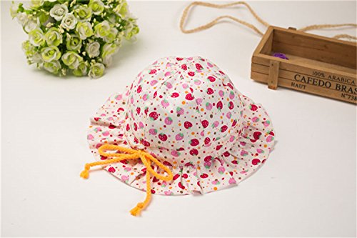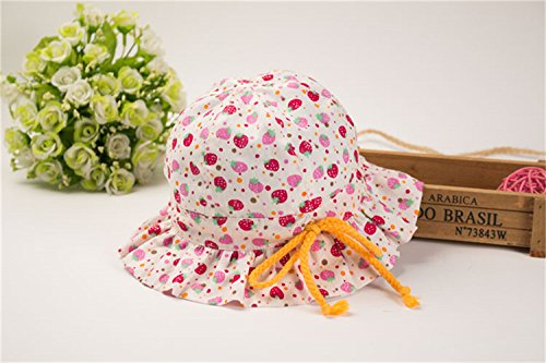 LeafIn キッズハット ベビー帽子 綿 紐リボン 紫外線対策 UVcut帽子 サファリハット チューリップハット (M, いちご柄)
