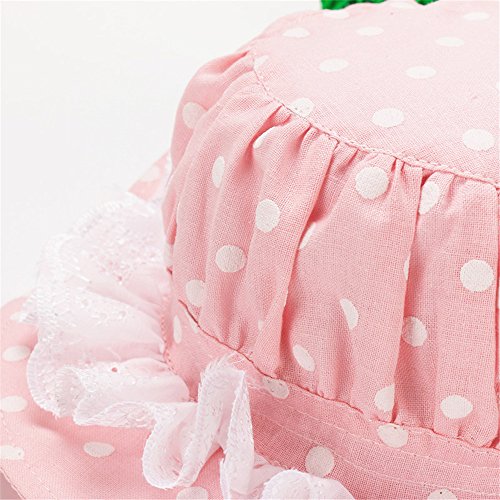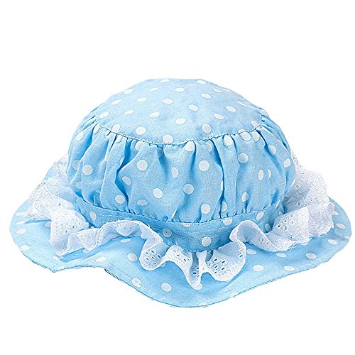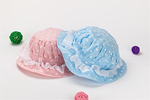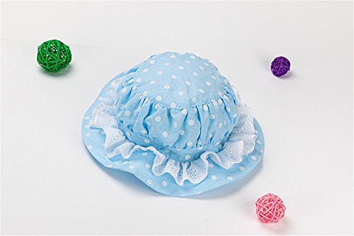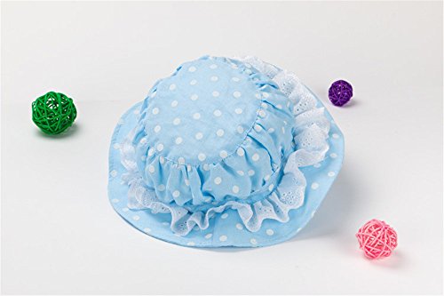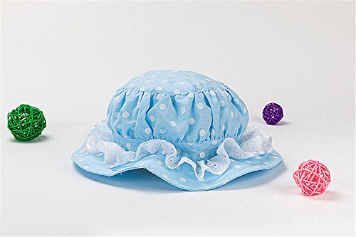 LeafIn キッズハット 子供向け 綿 紫外線対策 ベビーUVcut帽子 サファリハット チューリップハット ドット 水玉 レース F150 (S, ブルー)