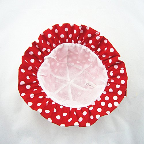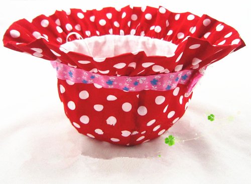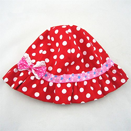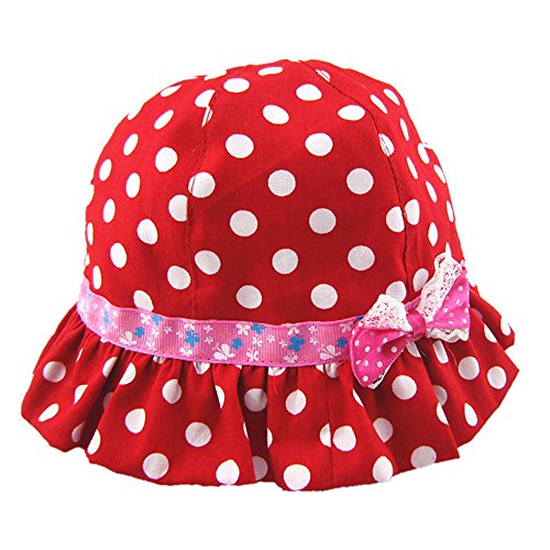 LeafIn キッズハット ベビー帽子 綿 ドッ ト 水玉 レース リボン 紫外線対策 UVcut帽子 サファリハット チューリップハット 顎ゴム付き (S, ドット レッド)