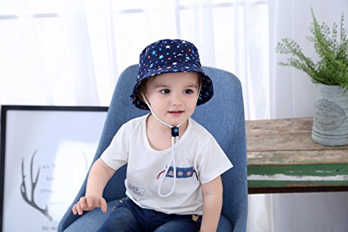 LeafIn ベビー 帽子 キッズ ハット ベビー ハット星柄 ひも付き 日よけ 紫外線対策 男女兼用 幼児用 子供用 50cm 1606