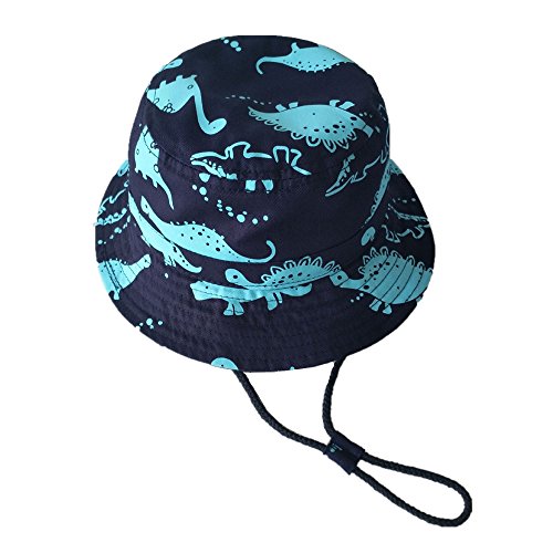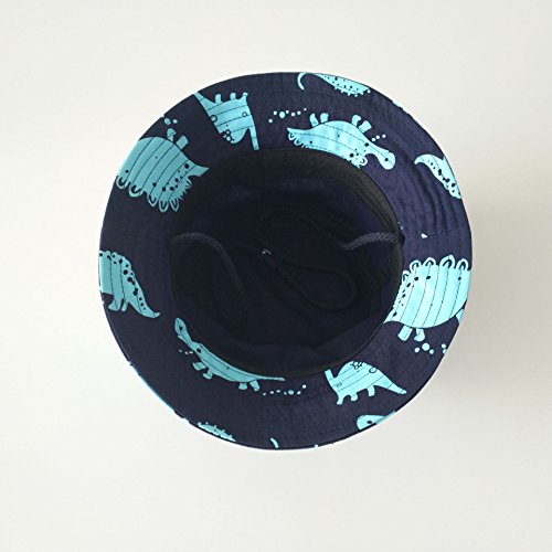 LeafIn ベビー 帽子 キッズ ハット 恐竜柄 ひも付き 日よけ 紫外線対策 UVcut帽子 男女兼用 子供用 綿クロッシェ サファリハット チューリップハット テンガロンハット (48cm, ブルー恐竜)