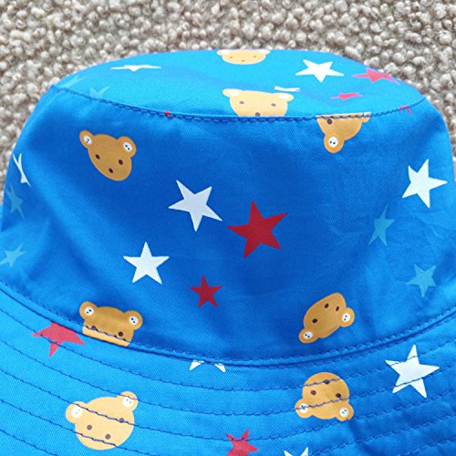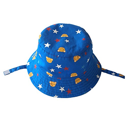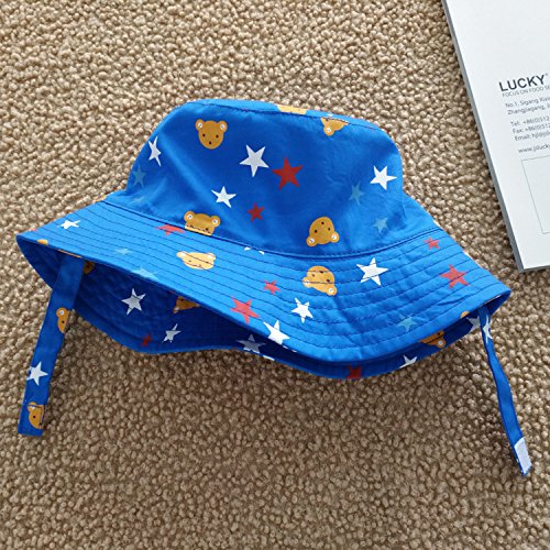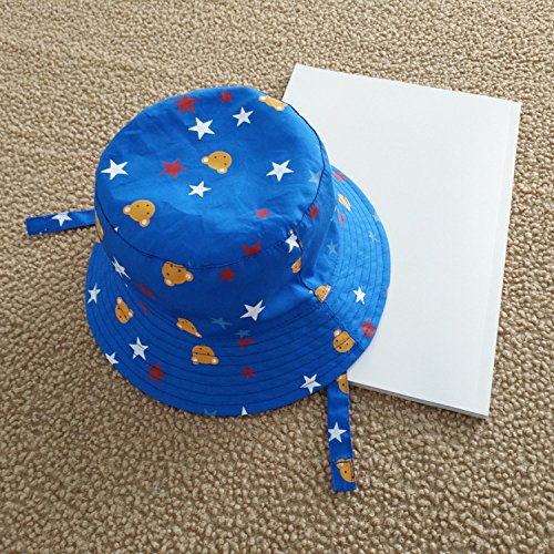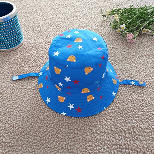 LeafIn ベビー 帽子 キッズ ハット 星 クマ 紐付き 日よけ 紫外線対策 UVcut帽子 男女兼用 子供用 綿クロッシェ サファリハット チューリップハット (頭囲:54cm, ブルー)