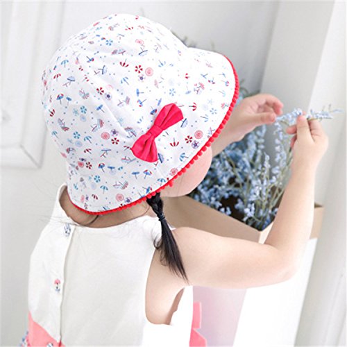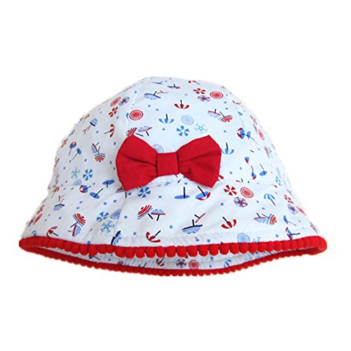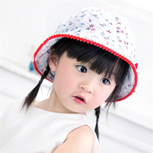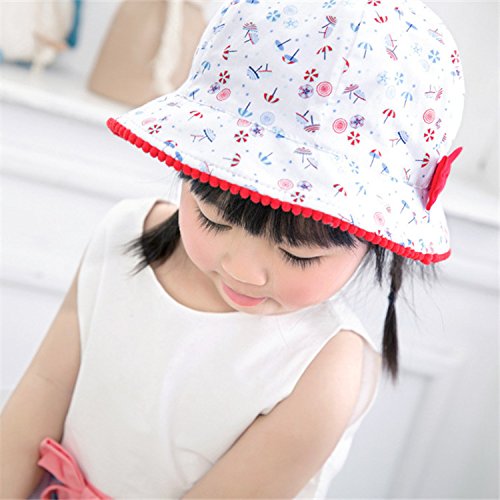 LeafIn ベビー 帽子 子供用 キッズハット 傘柄 リボン 紫外線対策 UVcut帽子 綿クロッシェ サファリハット チューリップハット ひも付き (頭囲48cm, ホワイト)
