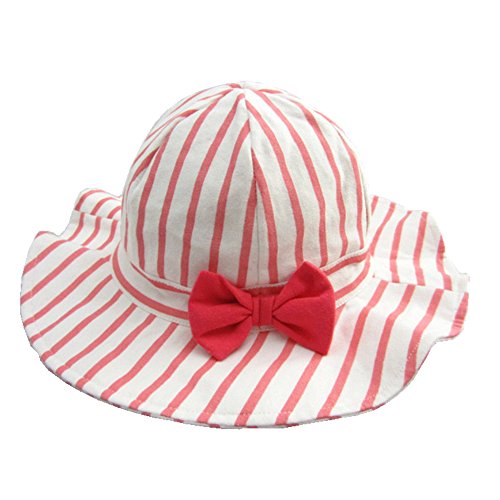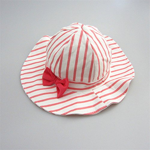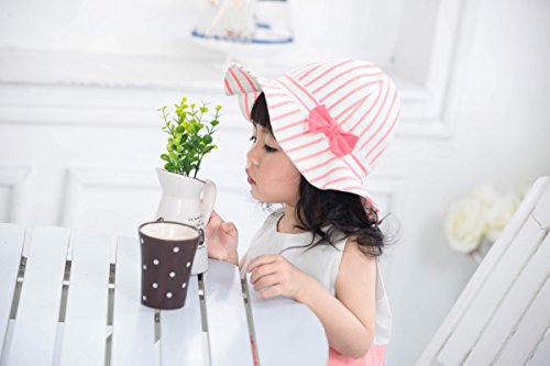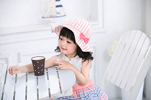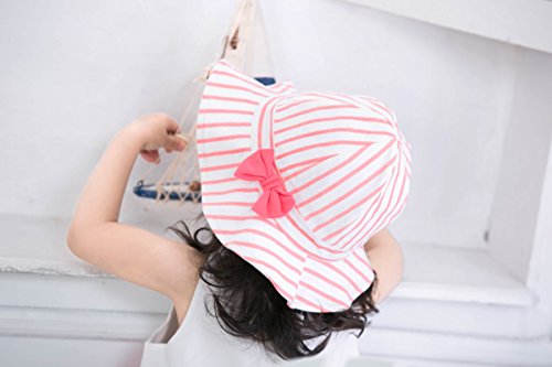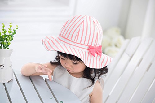 LeafIn ベビー 帽子 子供用 キッズハット つば広い ストライプ リボン 紫外線対策 UVcut帽子 綿クロッシェ サファリハット チューリップハット (頭囲44cm, ピンク)