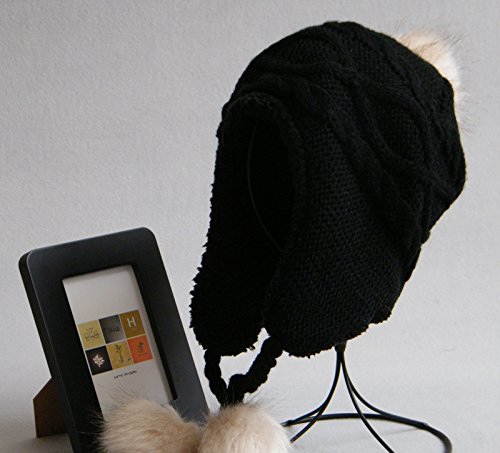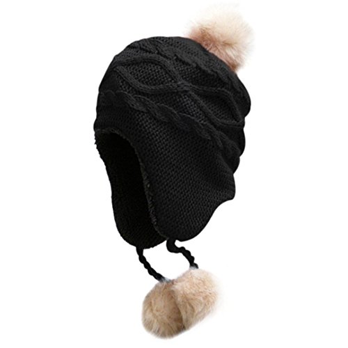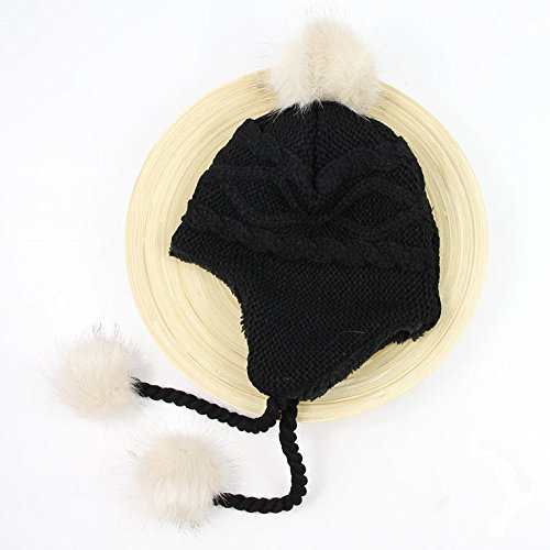 LeafIn ニット帽 キッズ 子供用 帽子 耳あて 秋冬 ベビー 防寒 ボア ポンポン 男の子 女の子 冬用ハット 男女兼用 ユニセックス 親子そろい (S, ブラック)