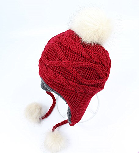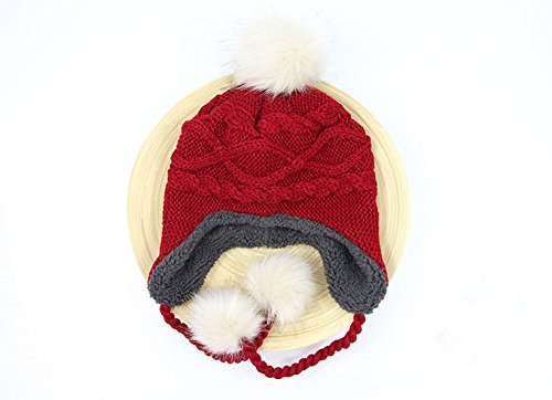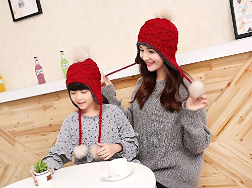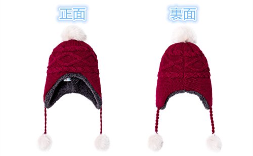 LeafIn ニット帽 キッズ 子供用 帽子 耳あて 秋冬 ベビー 防寒 ボア ポンポン 男の子 女の子 冬用ハット 男女兼用 ユニセックス 親子そろい (M, レッド)