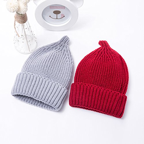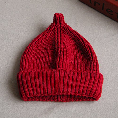 LeafIn ニット帽 キッズ 親子お揃い 帽子 無地 シンプル 三つ折りタイプ 秋冬 ベビー 防寒 女の子 男の子 男女兼用 冬用ハット スタイリッシュ ユニセックス (S, レッド)