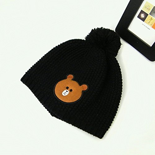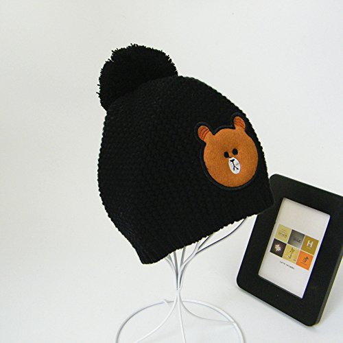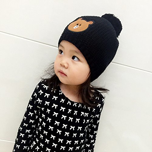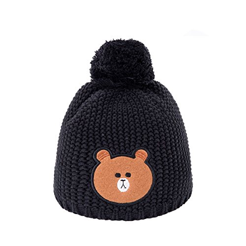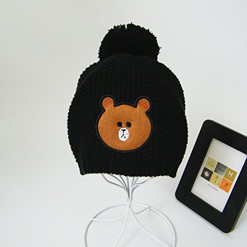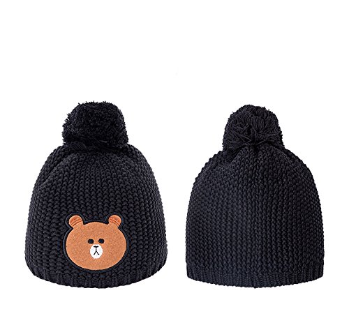 LeafIn ニット帽 コットン 綿 親子お揃い 帽子 クマ ポンポン 秋冬 ベビー 防寒 女の子 男の子 男女兼用 冬用ハット スタイリッシュ ユニセックス (L, ブラック)