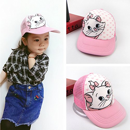LeafIn ベビー 帽子 キッズ ハット キャップ 野球帽 メッシュ 通気 日よけ 紫外線対策 UVcut帽子 猫 ハート 女の子 子供用ボールキャップ (M, ピンク)
