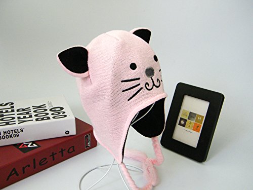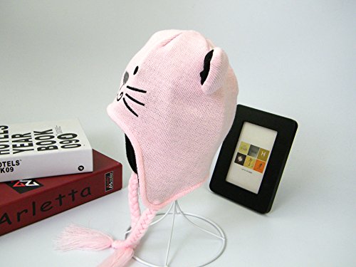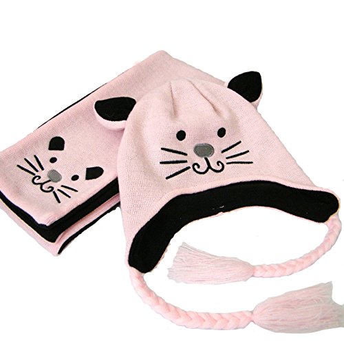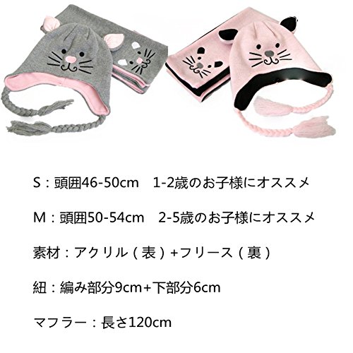 LeafIn ニット帽子 マフラー 2点セット 子供用 可愛い猫 耳付き 耳まであったか 秋冬 防寒 男女兼用 (S, ピンク)