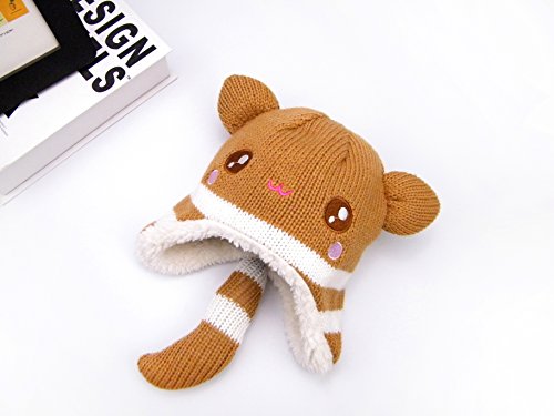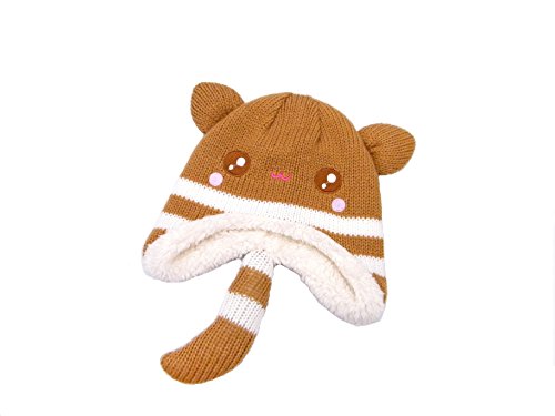 ニット帽 キッズ帽子 子供用 帽子 狸 耳付きしっぽ付き ボア 柔らかニット帽 かわいい 女の子 男の子 秋 冬 赤ちゃん 男女兼用 ユニセックス LeafIn (L)