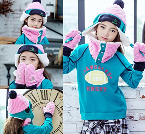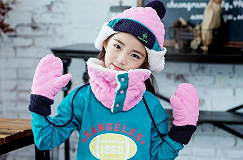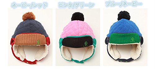 LeafIn ニット帽 キッズ 飛行帽 パイロット パイロットキャップ ベビー 帽子 子供 耳あて 防寒 ポンポン 女の子 男の子 春 秋 冬 (ピンク/グリーン, L)