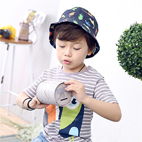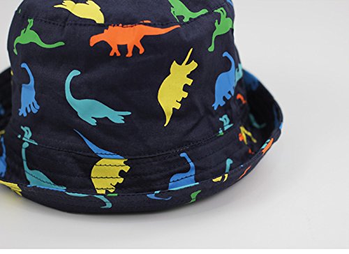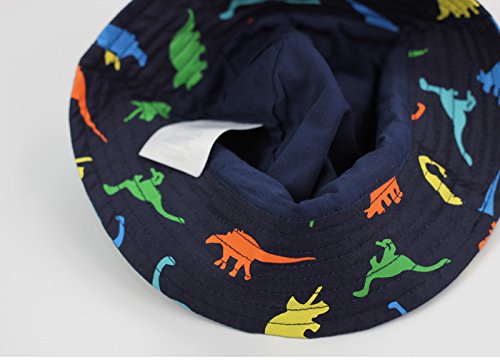 LeafIn キッズハット ベビー帽子 綿 恐竜柄 紫外線対策 UVcut帽子 サファリハット チューリップハット ネイビー (44cm, 恐竜柄)