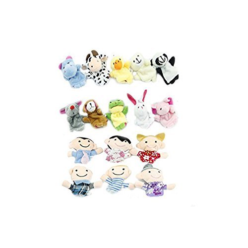 LeaningTech 指人形 家族6人+ 動物10匹 セット 足付き 縫いぐるみ 布製 知育玩具 フィンガー 小学校 の劇 保育園 幼稚園 パペット