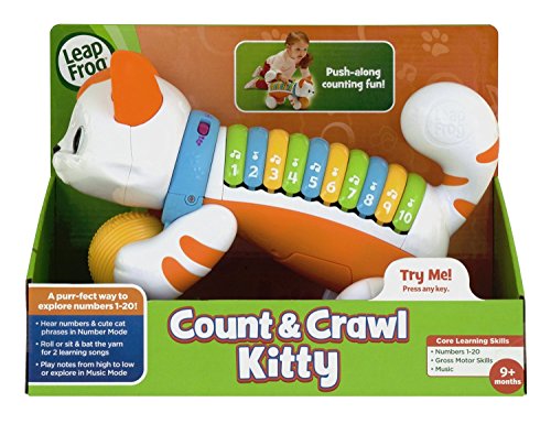 Counting is the cat's meow with Count & Crawl Kitty. Kids 9 months and up can press Kitty's colorful keys to hear fun and frisky phrases about numbers 1-20, explore mew-sical notes from high to low and create their own tunes. Younger babies will love sitt